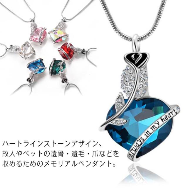 ハートラインストーン ネックレス メモリアルネックレス ハートラインストーン ハート レディース 遺骨カプセル 手元供養 メンズ メモリアルペンダント 遺骨アクセサリー 遺骨ジュエリー 故人様 身につける 思い出入れ キラキラ