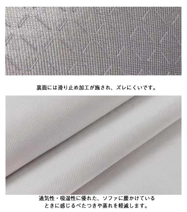 | ソファにかけるだけで快適にお使いいただけるソファカバーです。 接触冷感生地を使用し、夏もサラッと気持ち良く過ごせます。 通気性・吸湿性に優れた、ソファに腰かけているときに感じるべたつきや蒸れを軽減します。 裏面には滑り止め加工が施され、ズレにくいです。 掛けるだけでOKです!高齢者でも取り付け簡単です。 家で洗濯ができるので、簡単にお手入れできます。 ソファー座面を汚れ、きず、ほこり、汗でのベタつきなどから全面で守られ、ペットの引っ掻き対策でも可能です | |