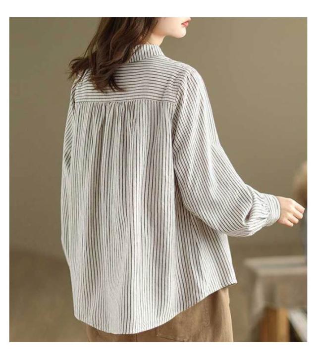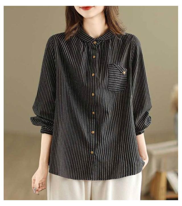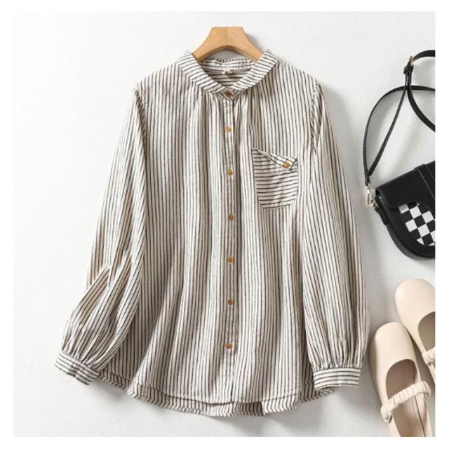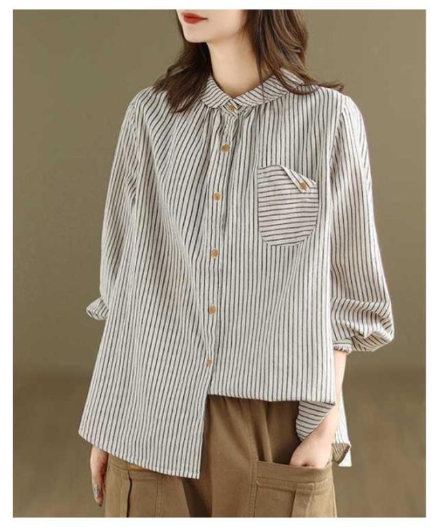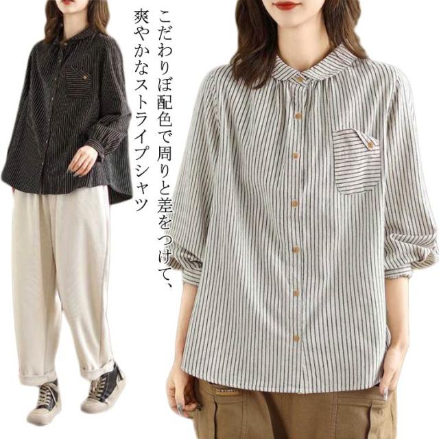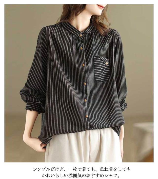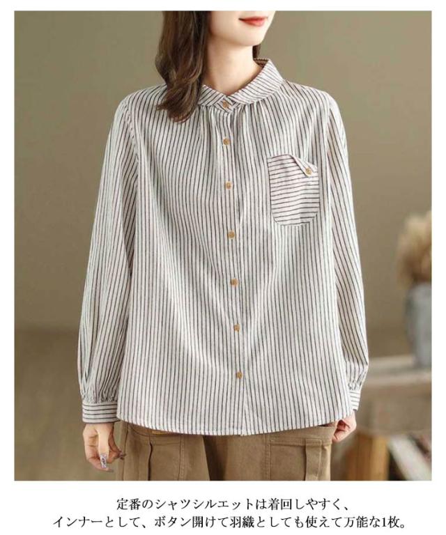 ストライプ 襟付きシャツ長袖 襟付きシャツ ブラウス 長袖 レディース レディース シャツ シャツ 丸襟 薄手 大きいサイズ シャツブラウス 大人 配色 ストライプシャツ ストライプ かわいい 前開き 羽織 丸襟シャツ 重ね着 襟 コーデ 長袖シャツ アウトドア