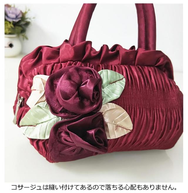 40代 20代 サテン サブバッグ パーティーバッグ コサージュ トートバッグ パーティードレスによくあうバッグ bag パーティー 洗える 結婚式 披露宴 フォーマル プレゼント ギフト 上品 授業参観 レディース 30代 bag 50代 Party