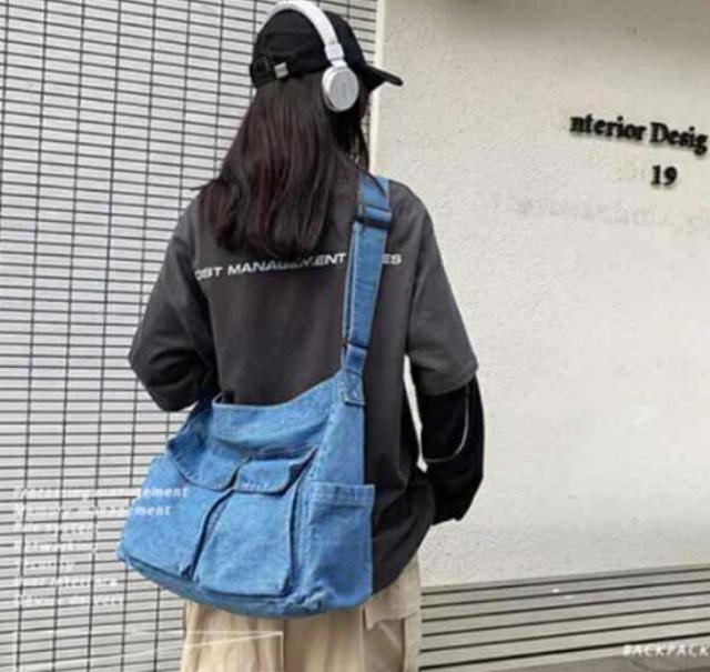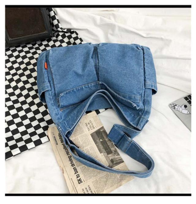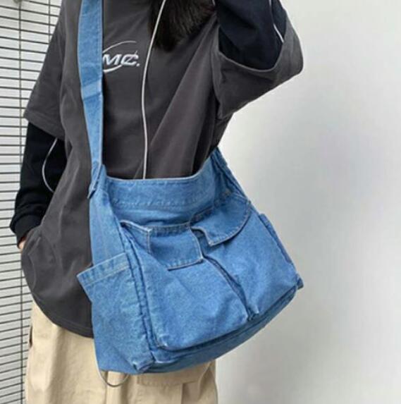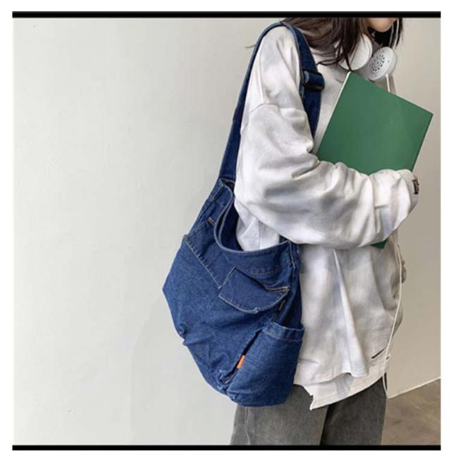 ショルダーバッグ レディース 通学 ポケット多い トートバッグ スクエア 肩がけ 男女兼用 ハンドバッグ メンズ ジーンズ素材 カバン バック 大容量 お出かけ デニム 斜め掛け バッグ