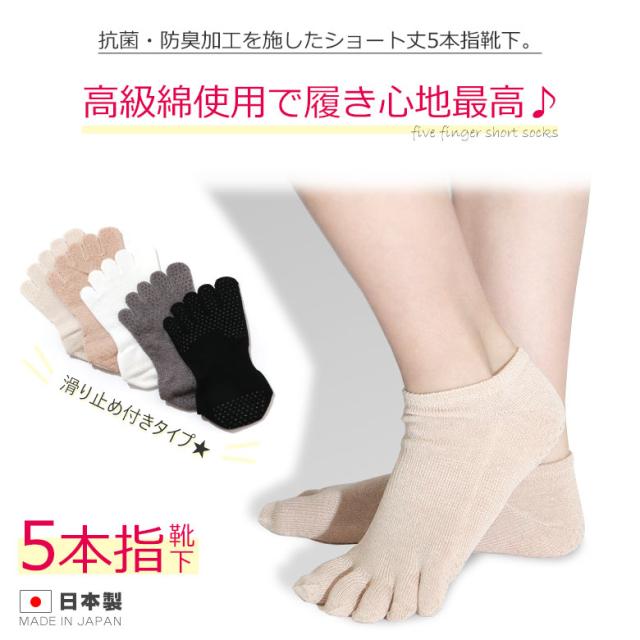 品名:5本指ソックス ショート丈 レディース (滑り止め付き)