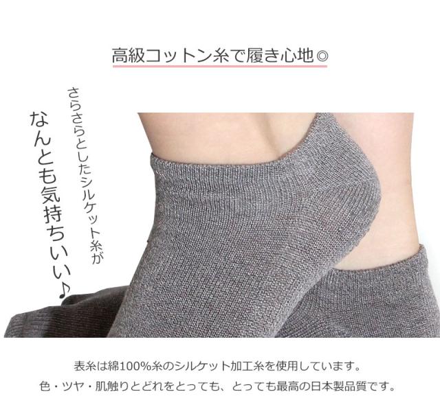 5本指ソックス ショート丈 レディース (滑り止め付き) スニーカー丈 綿100%糸使用 抗菌 防臭 シルケット加工 五本指靴下 むれ におい 水虫 涼しい靴下 夏用靴下23-25cm ★N201 太陽ニット
