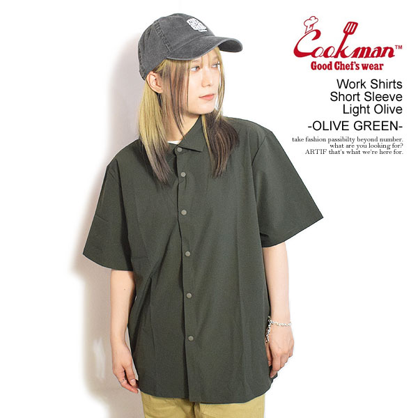 COOKMAN クックマン Work Shirts Short Sleeve Light Olive -OLIVE GREEN- メンズ シャツ 半袖 ドライ素材 ワークシャツ ストリート atftps