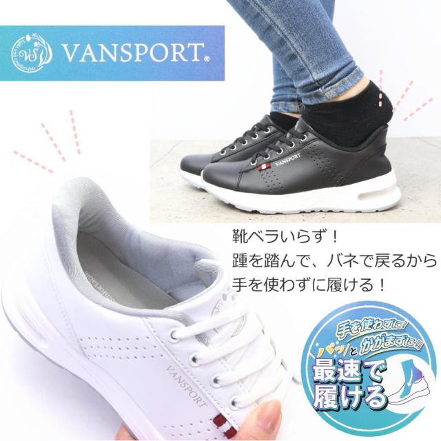 即納 手を使わず履ける レディース スニーカー カジュアル 軽量 ゴム紐 スリッポン VANSPORT No.400