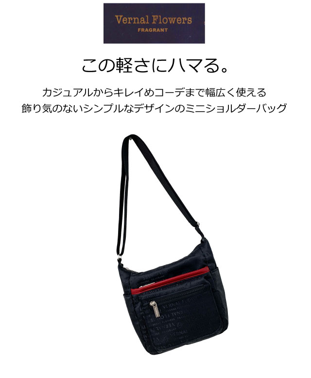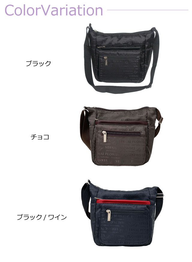 斜めがけバッグ レディース Vernal Flowers ナイロン 舟形 ショルダーバッグ vf-025 ショルダーバック 斜めがけ 軽い 軽量 大容量 母 祖母 斜め掛けバッグ 斜めがけバック 斜め掛け ギフト 誕生日プレゼント 母の日 敬老の日 人気 大人 ランキング 病院 通院 旅行 黒 茶