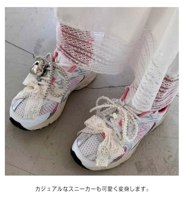 | 靴紐にパールの金具を通すだけで取り付け可能★ パールリボンがボリューミーで可愛いです! カジュアルなスニーカーも可愛く変身します。 インスタグラマーもおしゃれユーチューバーもこぞってGETしてます!! | |