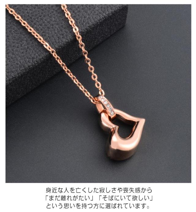 | 透かし彫りハートデザイン!最愛なる方、愛犬愛猫などの遺骨や遺品を納める事が出来るネックレスです。 辛い時 悲しい時 懐かしい思い出に浸る時、ふと気づくと手にとってしまうまるで自分を側で守っていてくれてるように感じられます。 ペンダントの本体に空洞があり、ネジで開閉 することで納められます。 身近な人を亡くした寂しさや喪失感から 「まだ離れがたい」「そばにいて欲しい」 という思いを持つ方に選ばれています。 故人を胸元に感じることで、前向きになる ためのジュエリーです。 | |