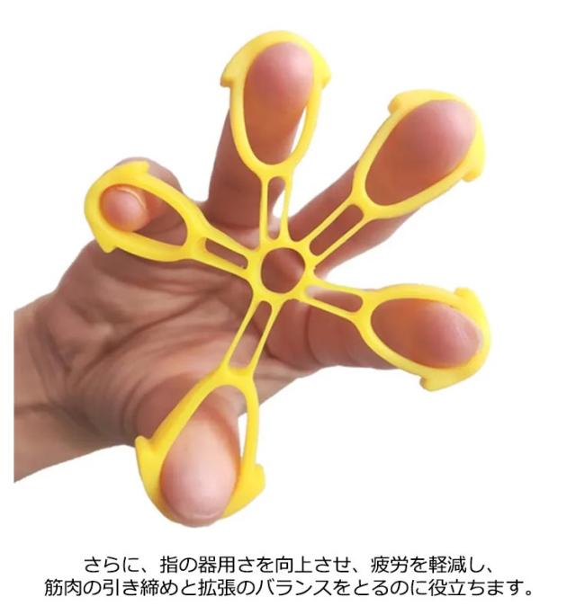 | 指や指関節のトレーニングやストレッチ、手指のリフレッシュ等に。 各種スポーツ・楽器奏者、リハビリ・ピアノ・ギターのトレーニングなどの日常生活や職場や趣味で指を快適に動かしたい方のサポートグッズです。 指のエクササイザを通じて、指、手首、前腕の強度を向上させるだけではなく、手の血液循環を改善させ、こわばりや痛みを軽減することもできます。 さらに、指の器用さを向上させ、疲労を軽減し、筋肉の引き締めと拡張のバランスをとるのに役立ちます。 お家でも外出先でも、指を動かすだけなので気軽にトレーニング! | |