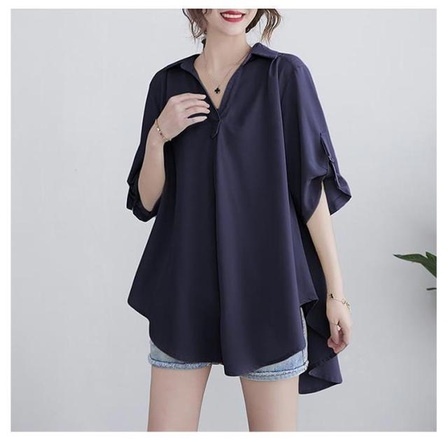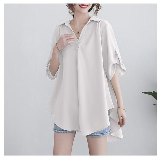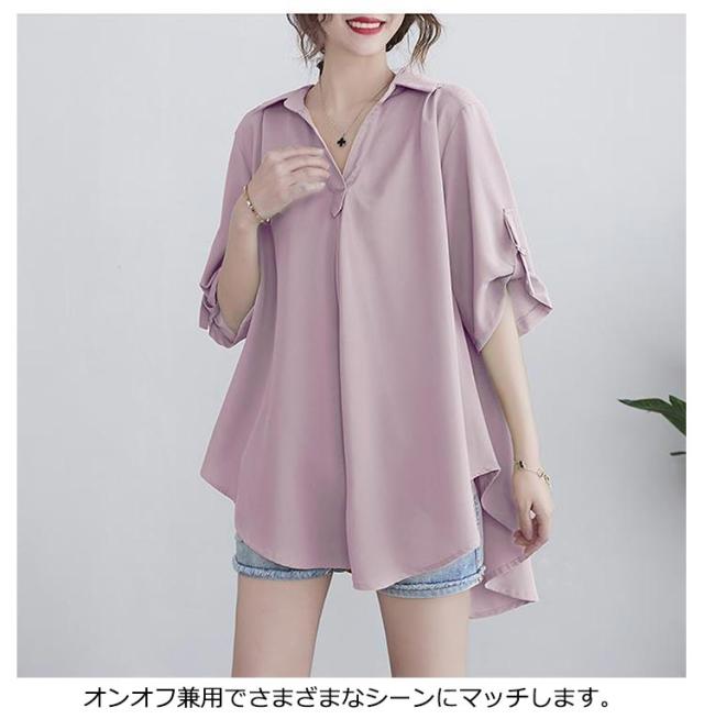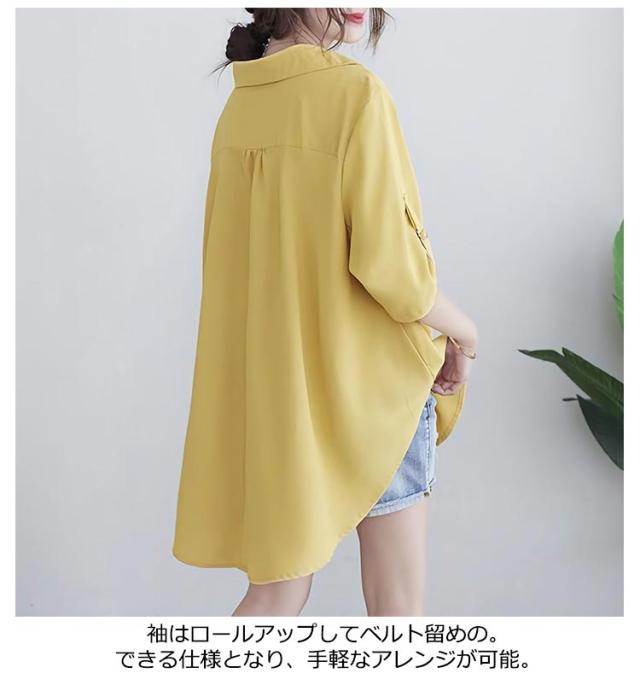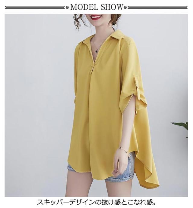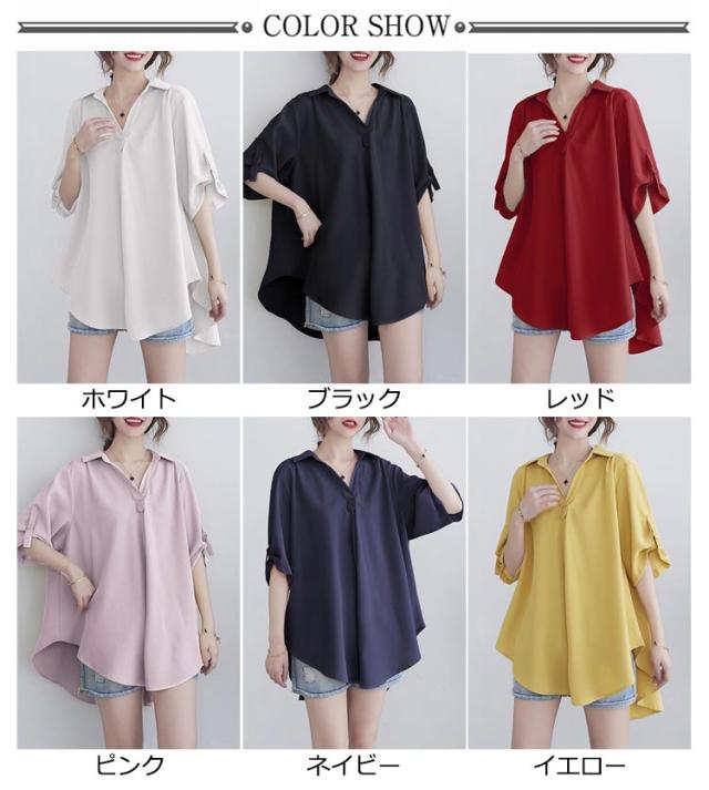 スキッパー ゆったり ロールアップ スキッパーシャツ ブラウス レディース トップス ブラウスシャツ きれいめ ブラウス 半袖 チュニック 無地 春 夏 大人 オフィス カジュアル シャツ 春夏 20代 30代 40代 ママ