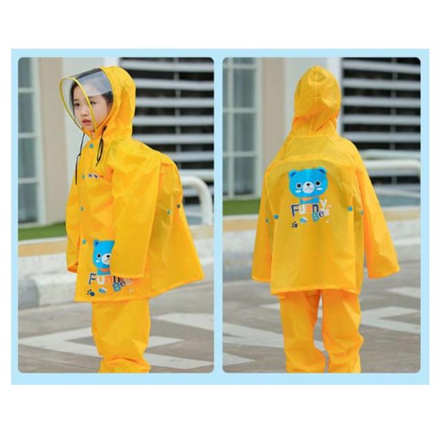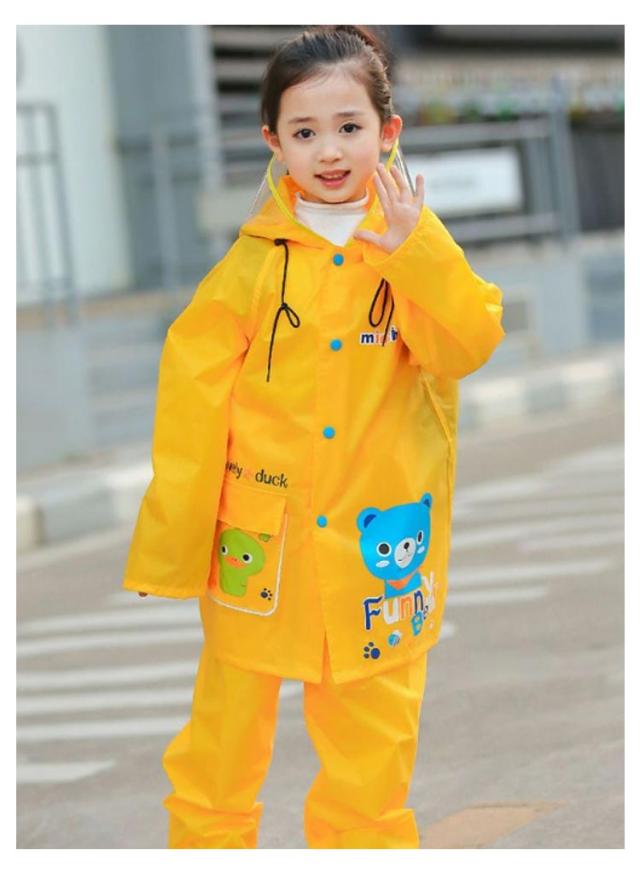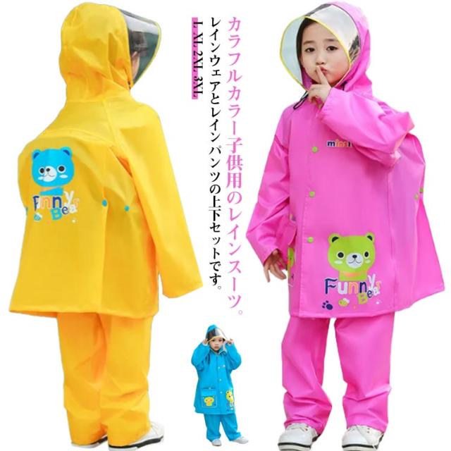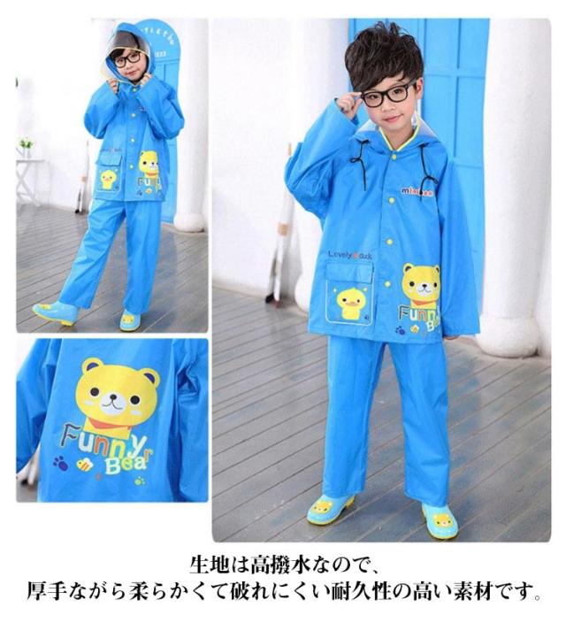 | カラフルカラー子供用のレインスーツ。レインウェアとレインパンツの上下セットです。 フードは大きめで透明バイザー付きなので、雨風を防ぎ、視界を良好に保てるデザインです。 生地は高撥水なので、厚手ながら柔らかくて破れにくい耐久性の高い素材です。 背中部分が立体設計になっているので、リュックやランドセルを背負ったまま、レインコートが着れます。通園や通学時に便利です。 雨の日の保育園や幼稚園、小学校への通学にぴったり! | |