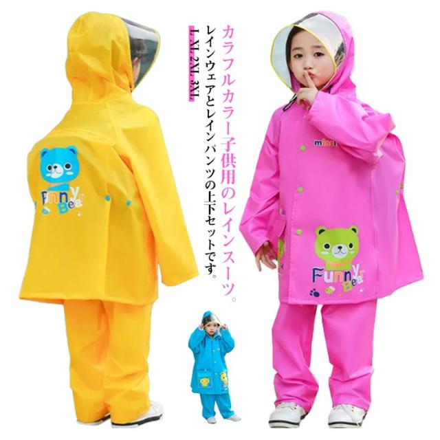 セパレート レインコート 上下セット レインスーツ キッズ パンツ 撥水 レインウェア コート レインウエア レイン フート付き 透明ツバ レインコート セパレート セットアップ パンツ式 雨具 カッパ ポンチョ 【ランドセル対応】