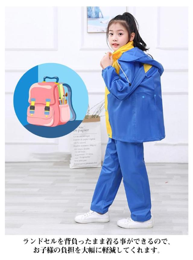 レインコート レインスーツ キッズ ジュニア セパレート 上下セット 自転車 ランドセル対応 2点セット 中学生 上下 レインパンツ ウインドブレーカー ガールズ 雨合羽 女の子 男の子 レインパーカー 通学 ボーイズ おしゃれ 小学生 反射材 林間学校 雨具 遠足 レインウエア