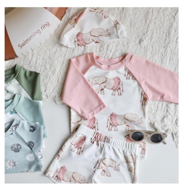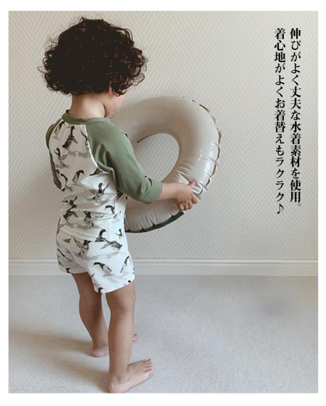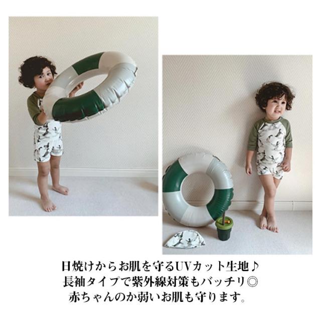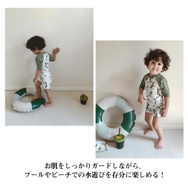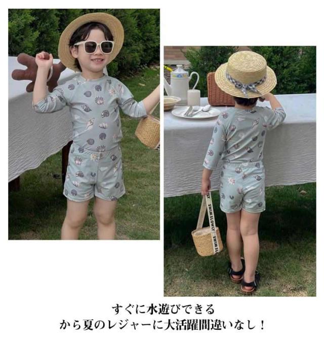 | トップスもショートパンツもこれ一枚でOK!便利なセパレート水着2点セット。 日焼けからお肌を守るUVカット生地♪長袖タイプで紫外線対策もバッチリ◎赤ちゃんのか弱いお肌も守ります。 伸びがよく丈夫な水着素材を使用。着心地がよくお着替えもラクラク♪ お肌をしっかりガードしながら、プールやビーチでの水遊びを存分に楽しめる! すぐに水遊びできるから夏のレジャーに大活躍間違いなし! | |