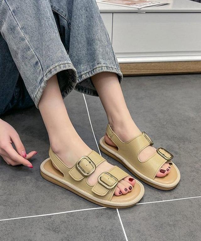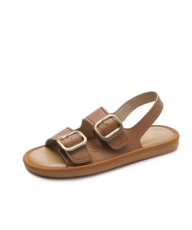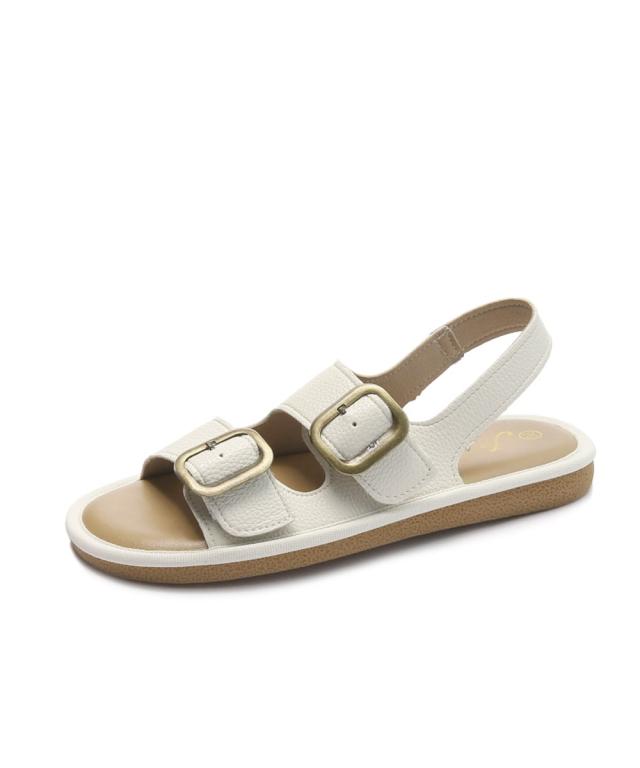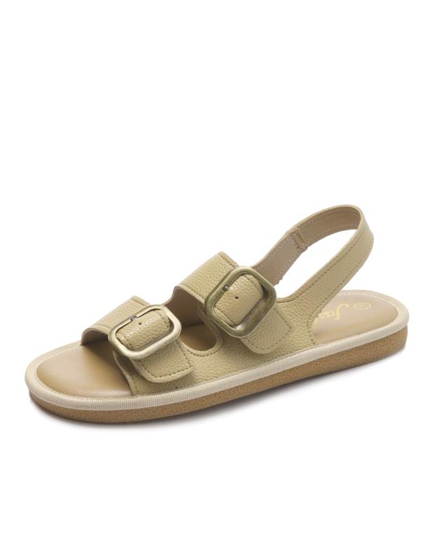 大きめのバックルがアクセントになった、トレンド感溢れるダブルベルトサンダル