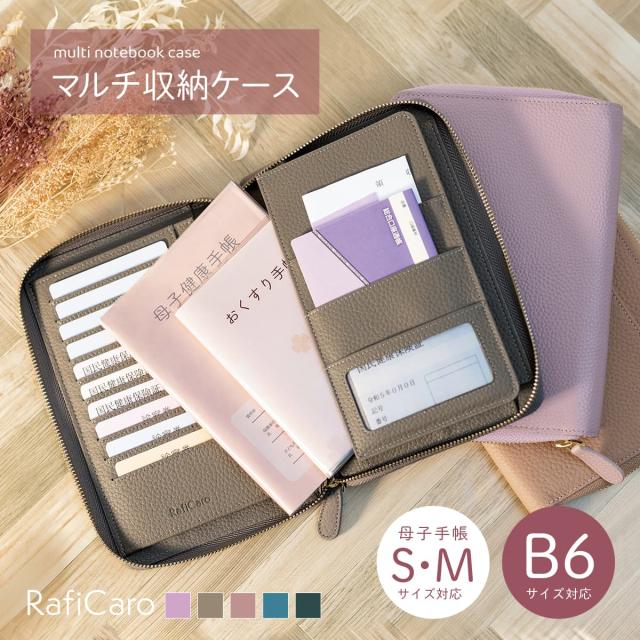 【限定1,000円OFF】【4,980円→3,980円】RafiCaro 大容量の本革おくすり手帳ケースファスナータイプ B6 お薬手帳 ポーチ カードケース マルチケース 多ポケット おくすり手帳 カバー ペンホルダー付き 通帳 診察券 カード 保険証 母子手帳 パスポート