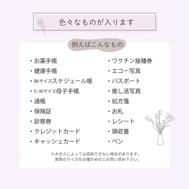 - グリーン色を購入しました。 お薬手帳等、余裕で収納出来ました。 今迄、100円ショップのチャック付きプラ袋を使っていましたが、かなりレベルアップした感じです。 これから愛用させて頂きます。
