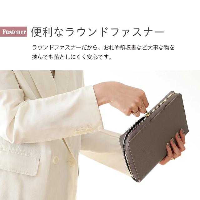 毎日使うものだからこそ、アウターはこだわりのレザー製。優れた手触りと耐久性は本革ならではの魅力です。シンプルで飽きのこないデザイン。ゴールドカラーのファスナー金具が革の色味と質感を引き立てます。