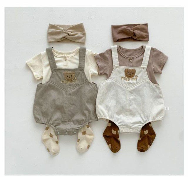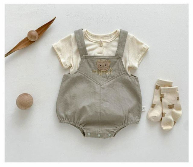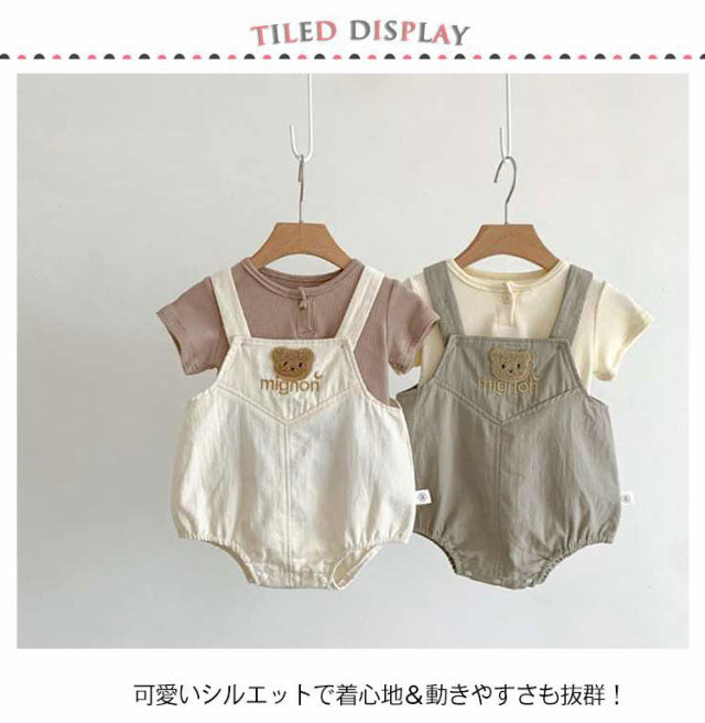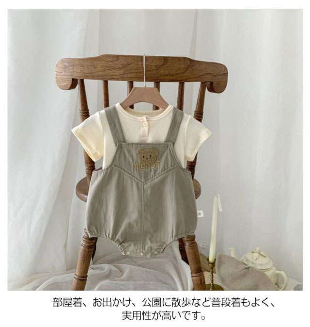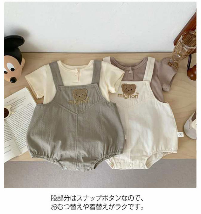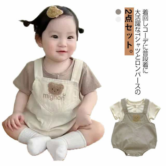 オーバーオール Tシャツ 2点セット ロンパース 夏服 半袖 男の子 女の子 クマ 子供服 カバーオール オールインワン 赤ちゃん 新生児 可愛い 出産祝い 内祝い ギフト 送料無料