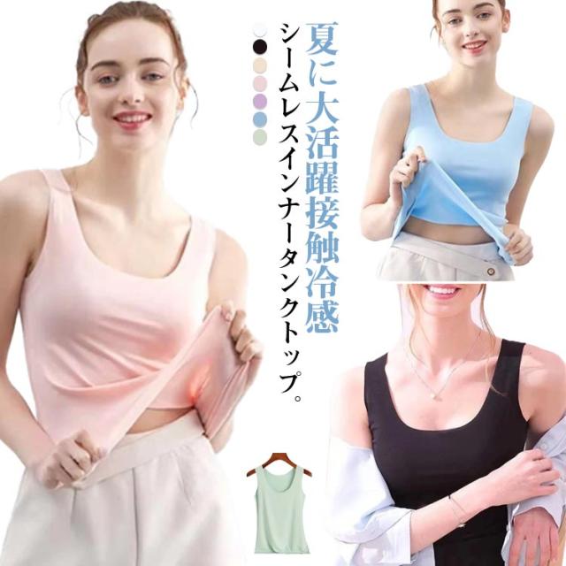 3枚セット!インナー 黒 薄手 肌着 レディース スクエアネック シームレス フィット 接触冷感 タンクトップ 吸汗 速乾 下着 フィット インナー タンク ブラ紐隠し 大きいサイズ ストレッチ ひんやり 白 ピンク タンクトップ 送料無料