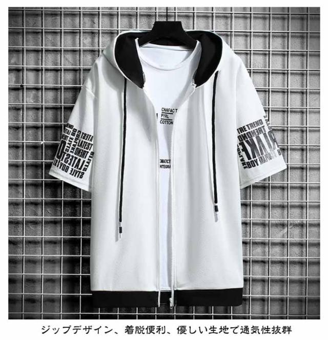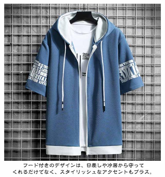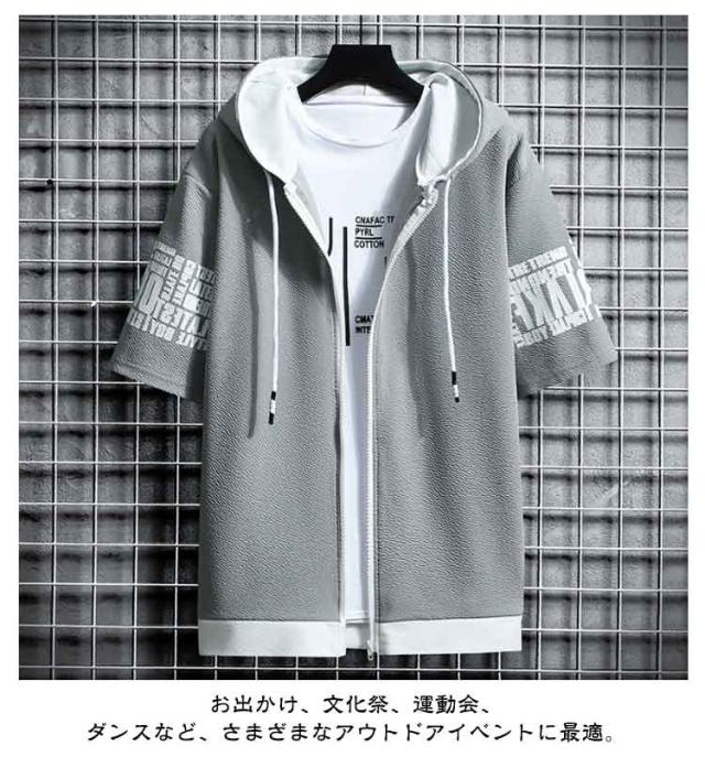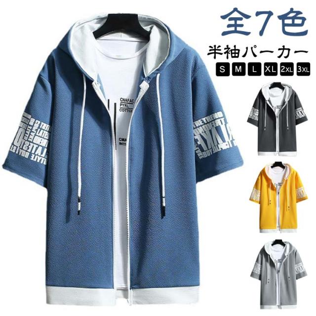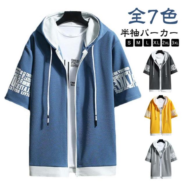 半袖パーカー メンズ 前開き パーカー 半袖 春夏 フード付き ジップパーカー おしゃれ スウェットパーカー 夏服 トップス トレーナー カジュアル 大きいサイズ メンズファッション フード付きTシャツ アウトドア 羽織 羽織り 送料無料