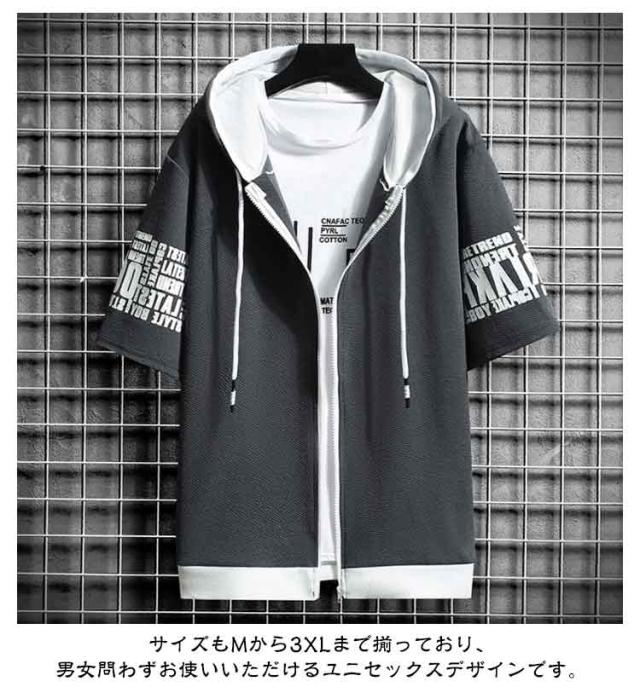| 【S-3XL】【全7色】【半袖パーカー】 ジップデザイン、着脱便利、優しい生地で通気性抜群 レイヤードもしやすく、カットソーやシャツに1枚合わせるだけで、今っぽい印象のスタイリングなる嬉しいアイテムです。 フード付きのデザインは、日差しや冷房から守ってくれるだけでなく、スタイリッシュなアクセントもプラス。 お出かけ、文化祭、運動会、ダンスなど、さまざまなアウトドアイベントに最適。 サイズもMから3XLまで揃っており、男女問わずお使いいただけるユニセックスデザインです。 | |