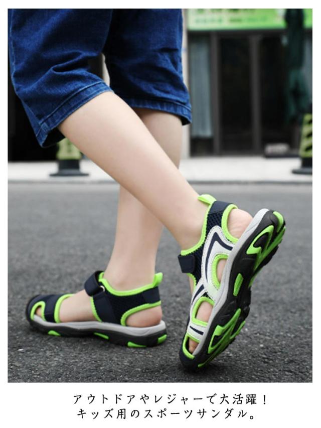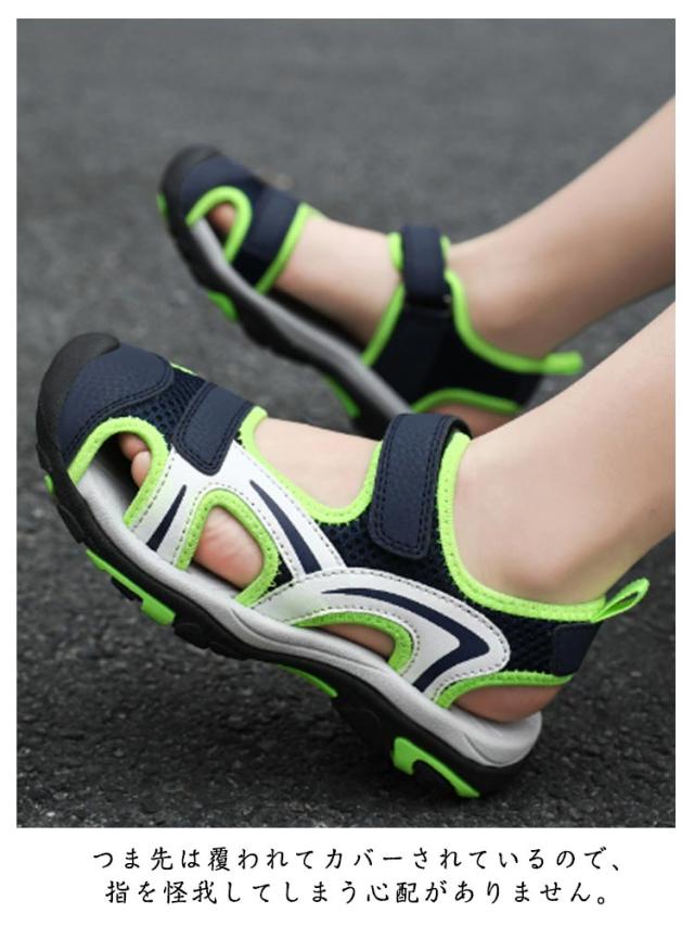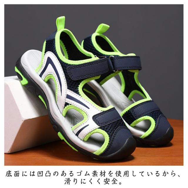 サンダル キッズ 子供 男の子 スポーツサンダル つま先ガード メッシュ 配色 ウォーターシューズ ビーチサンダル 川遊び キャンプ ボーイズ 男児 小学生 つま先保護 滑りにくい 夏 海 プール 川 ビーチ レジャー アウトドア 水場 運動