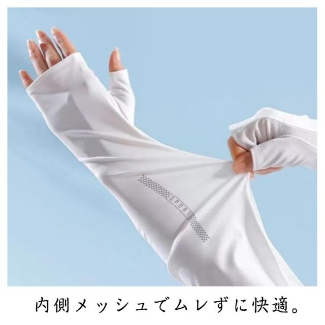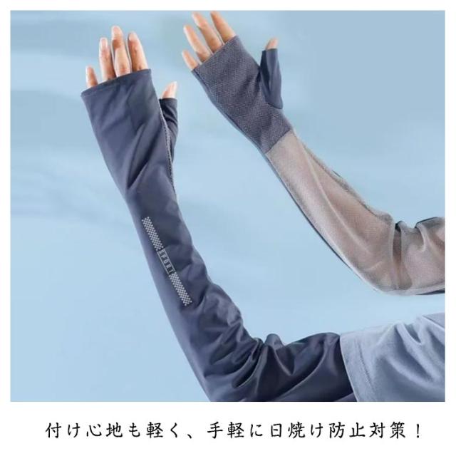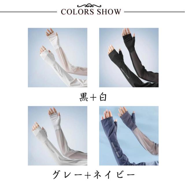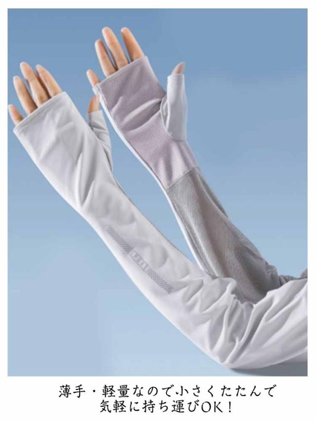 アームカバー 2色セット ロング丈 レディース 接触冷感 ひんやり クール UVカット 日焼け止め 日焼け対策 紫外線 指なし 指切り スマホ 熱中症 対策 通勤 通学 運動会 部活 屋外 プレゼント ギフト