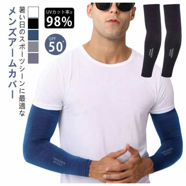 メンズ アームカバー UV 日焼け対策 UPF50+ 接触冷感 吸汗速乾 男用 大きいサイズ ロング 冷感アームカバー スポーツ 自転車 ゴルフ 野球 アウトドア 紫外線対策 UVカット ズレ落ち防止 滑り止め 軽量 薄手 フィット感 ストレッチ 伸縮性 吸湿性 通気性 メッシュ おしゃれ