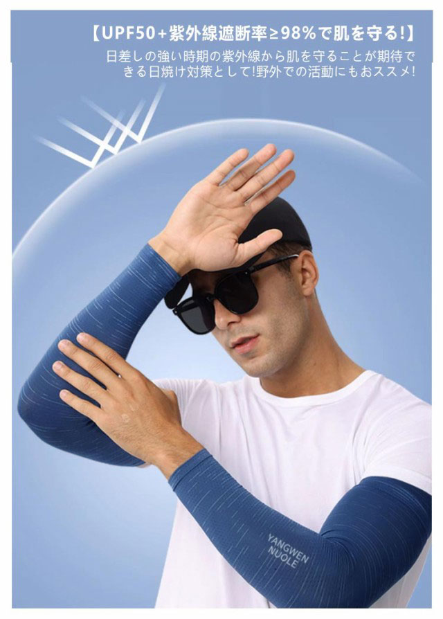 | メッシュ生地で通気性抜群! UVカット率?98% UPF50+ 接触冷感 吸汗速乾 暑い日のスポーツシーンに最適なメンズアームカバー 【触った瞬間ひんやり】接触冷感の材質を採用して、汗をかいたり水に触れたりした時、氷水と洋の満れが熱の作用を気化させ、気化吸熱原理に基づいて。冷却効果があります。 【UPF50+紫外線遮断率?98%で肌を守る!】日差しの強い時期の紫外線から肌を守ることが期待できる日焼け対策として!野外での活動にもおススメ! 【ズレ落ち防止】引き締めるデザイン、手や肘の曲げ伸ばしによるずリ上がりやずり落ちりの心配がなし! 【伸縮性・通気性抜群】伸縮性にも優れ多様な腕にもフィット◎ さらに通気性も抜群で速乾性も抜群なので快適に着用できます! 【毛玉になりにくい】高品質なアイスシルク生地を使用することで引っかかりによる毛玉を防止します。 【色んな場面で使いやすい!】シンプルなデザインで普段使いはもちろんスポーツ等様々なシーンで使いやすい!夏場でも野外での活動快適に過ごせるようサポート! | |