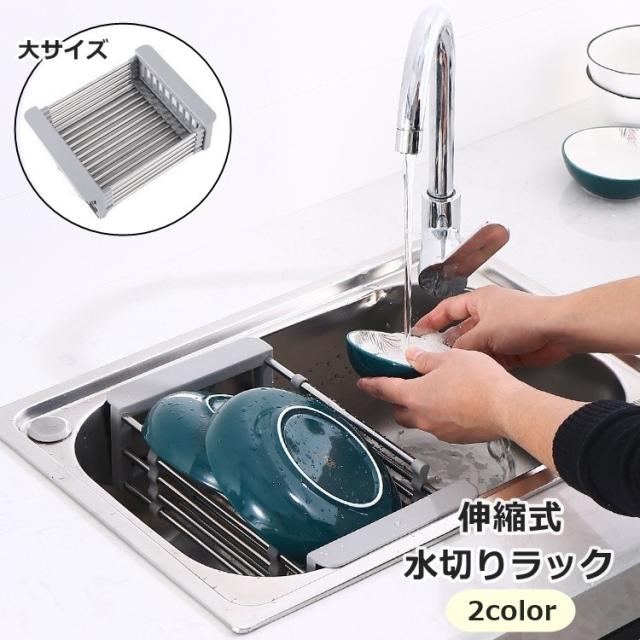 水切りラック 伸縮式 水切りかご シンクバスケット シンク内 ステンレス キッチン収納 台所用品 大容量 省スペース 食器乾燥