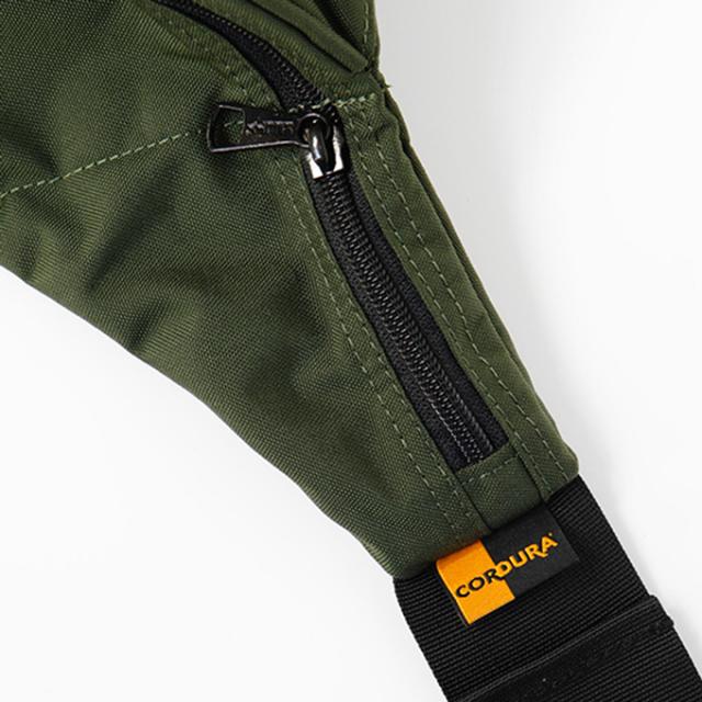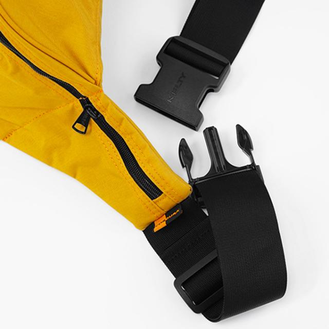 ミニファニーのベルトには50mmの太幅のテープが使われているので、中身が重たくなっても肩に食い込まず、快適に使用することができます。また、着脱のしやすい大型の別注バックルが付いているので、長さの調節を簡単に行うことができます。