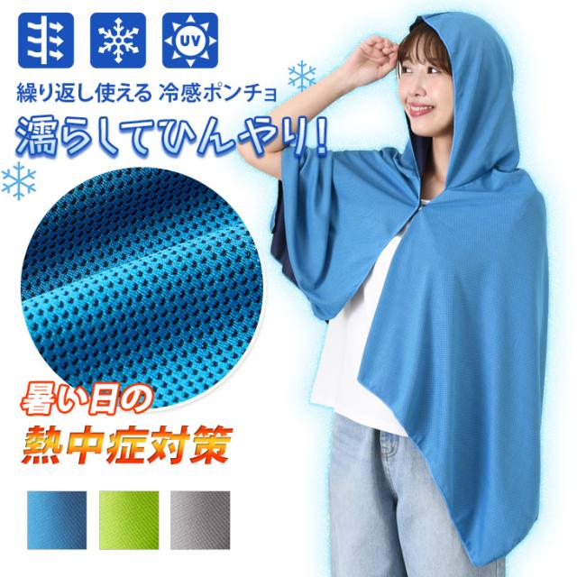 新作 濡らしてひんやり! 繰り返し使える 冷感ポンチョ レディース メンズ パーカー 羽織り 夏 冷却 薄手 軽量 涼しい ひんやり UV 通気性 速乾 日よけ 運動 スポーツ アウトドア 熱中症対策 暑さ対策