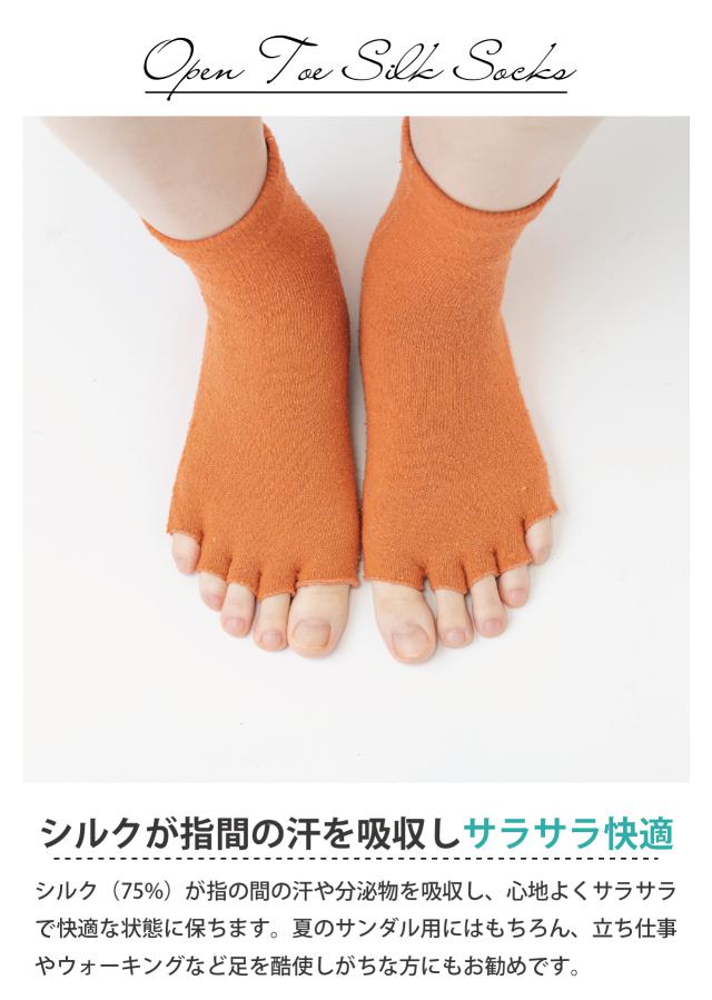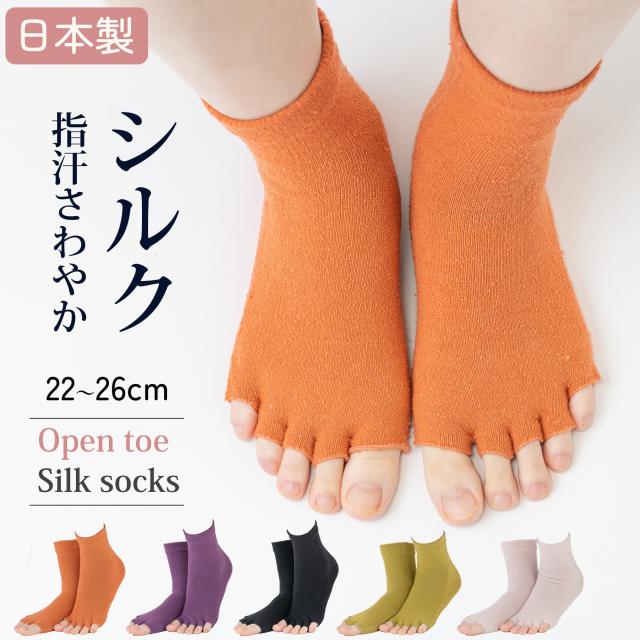 靴下 シルク 5本指 指なし 日本製 指先なし レディース オープントゥ 絹 吸汗 重ね履き 冷え対策 冷え取り 就寝用 五本指 おやすみ 5本指ソックス サンダル用 夏用 サンダル シルク混