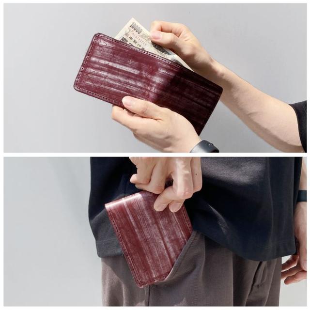 高級感と頑丈さが特徴ですのでビジネスシーンにピッタリな二つ折り財布です。
