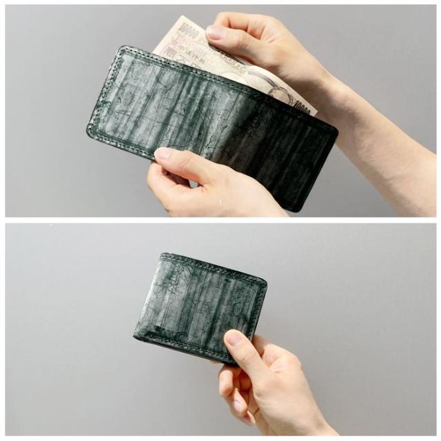 使いやすさにこだわった本革二つ折り財布です。