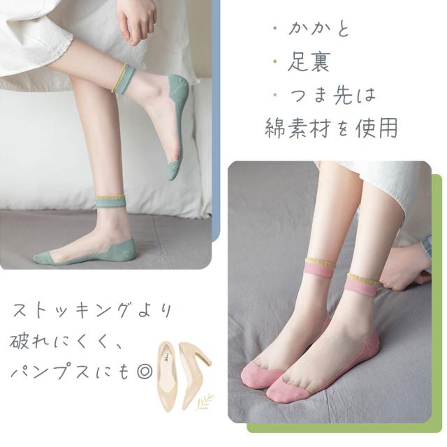 シースルー ソックス 4足+1足 シースルー 靴下 可愛い 夏用 くつ下 レディース 見えない 薄手 フットカバー 脱げない レース靴下 ソックス かわいい おしゃれ 素足 蒸れない MILASIC ポイント消化
