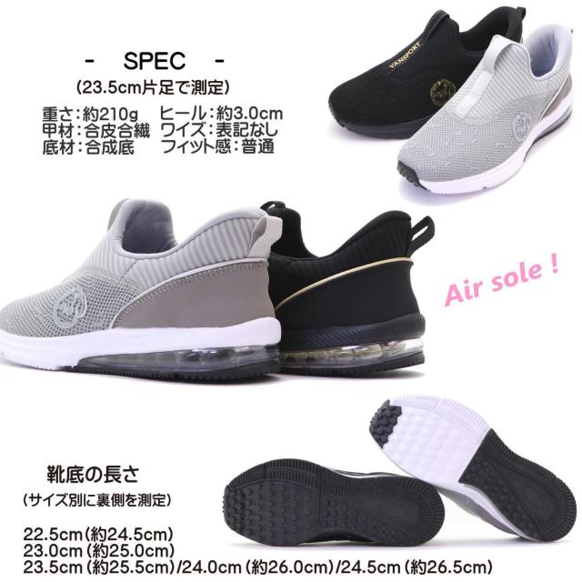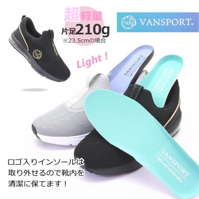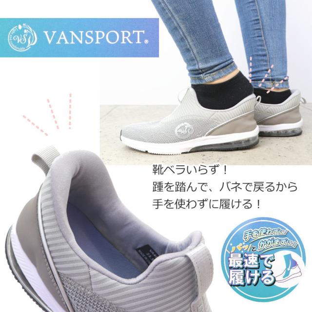 即納 手を使わず履ける レディース スニーカー カジュアル 軽量 メッシュ スリッポン VANSPORT No.402