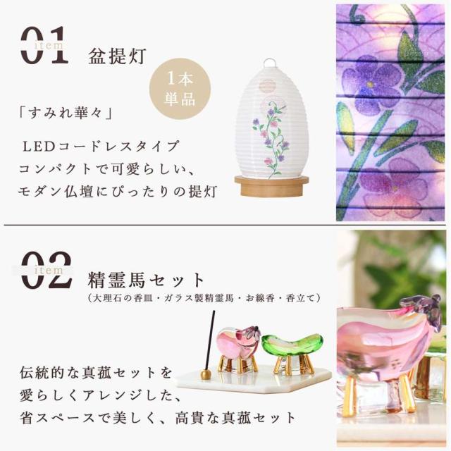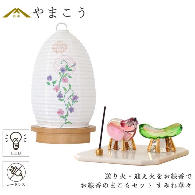 盆提灯 初盆 モダン ミニ お盆 提灯 新盆 お盆飾り 仏具 お線香のまこもセット 夏あかり・岐阜シリーズ すみれ華々 オリジナル コードレス led お盆用品 お供え おしゃれ 送り火 迎え火