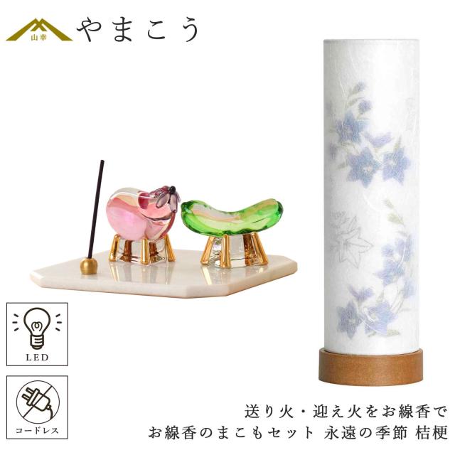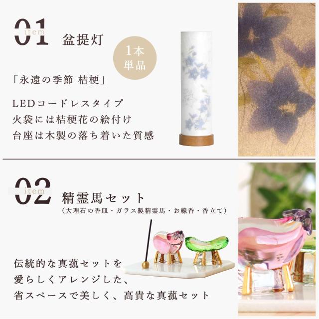 盆提灯 初盆 モダン ミニ お盆 提灯 新盆 お盆飾り 仏具 お線香のまこもセット 夏あかり・岐阜シリーズ 永遠の季節 桔梗 コードレス led お盆用品 お供え おしゃれ 送り火 迎え火