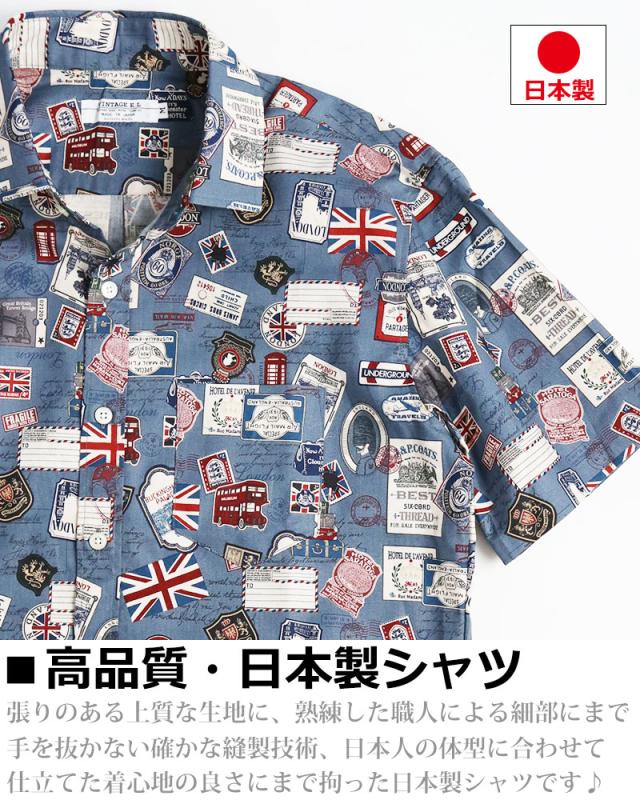 日本製 VINTAGE EL イギリス ポスト 柄シャツ メンズ UK ユニオンジャック 国産