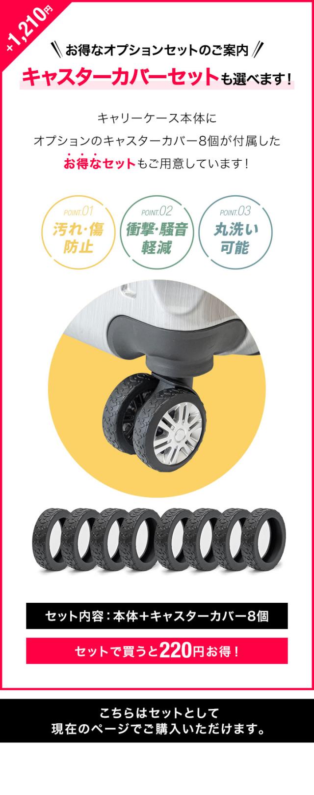 | ※[店舗管理用 URL]a07451 ※[品番]【キャリーケース本体のみ/ブラック:a07451】【キャリーケース本体のみ/ホワイト:a07452】【キャスターカバー8個付(+1,210円)/ブラック:a06210】【キャスターカバー8個付(+1,210円)/ホワイト:a06211】 |