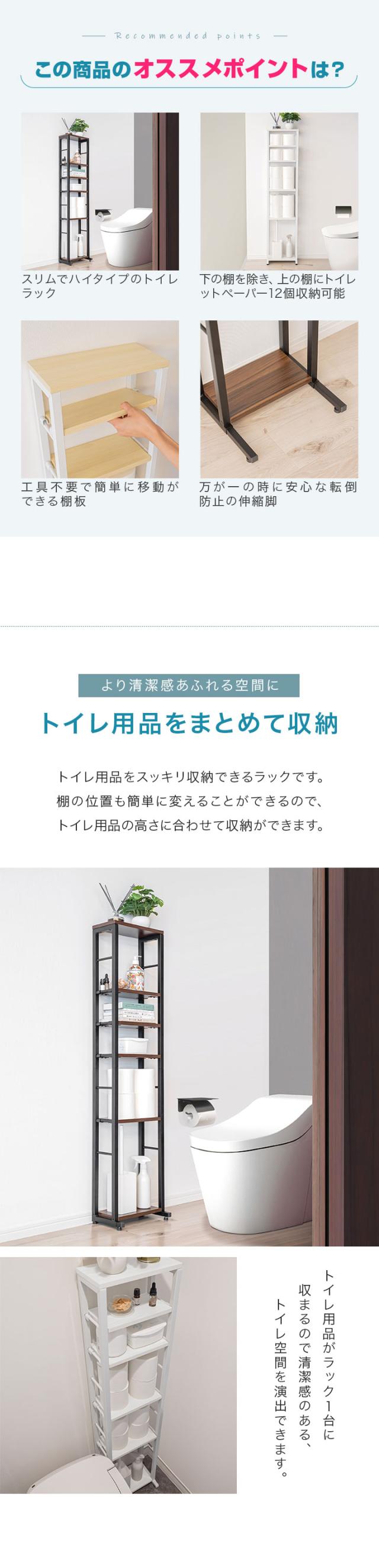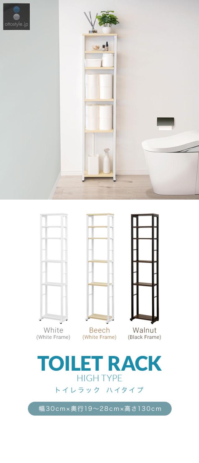 トイレ収納 スリムラック ハイタイプ 幅30cm 奥行19cm〜28cm 高さ130cm 6段 可動棚4段 トイレ収納ラック トイレラック 収納棚 すきま収納 隙間収納 オープンラック トイレタリー サニタリーラック トイレットペーパー収納 1年保証 送料無料