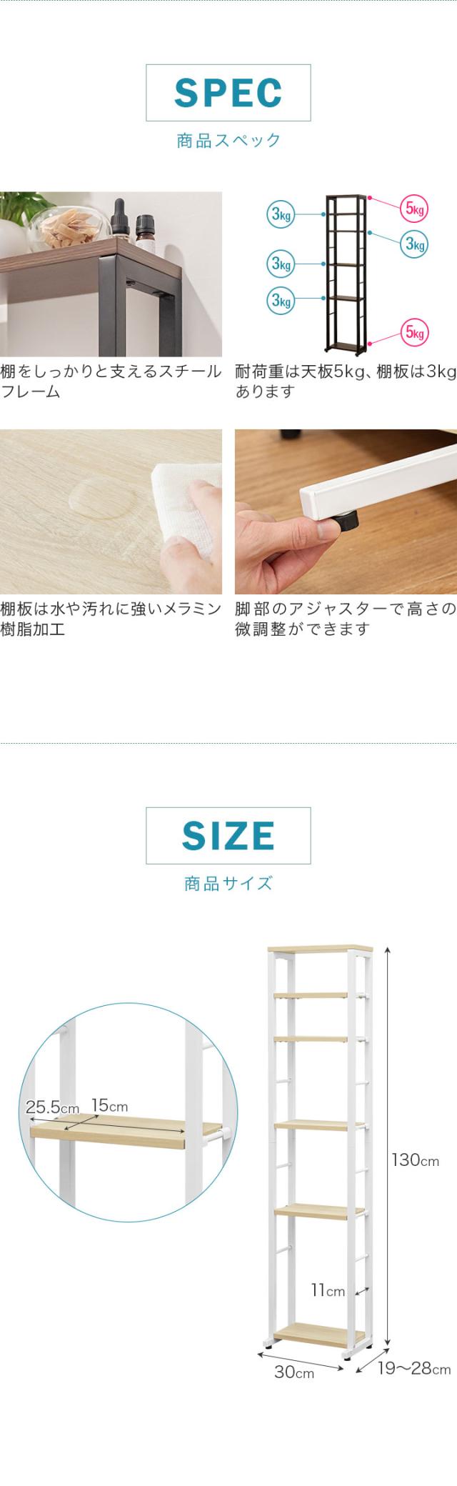 | サイズ: (約)幅30cm×奥行19〜28cm×高さ130cm |