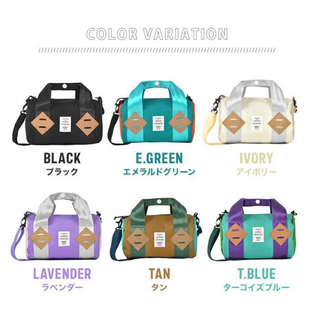 配色がかわいい2WAYミニボストン。ショルダー紐が取り外せるので肩掛け・手提げどちらでも使うことができます。500mLのペットボトルや着替えまで入って見た目以上に収納力があります。おしゃれなカラーリングで男女問わず持てるショルダーバッグです。