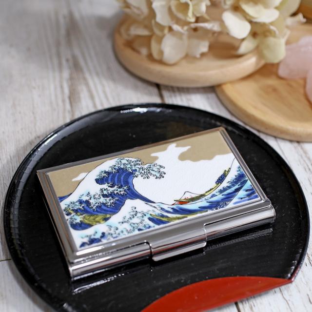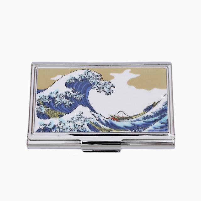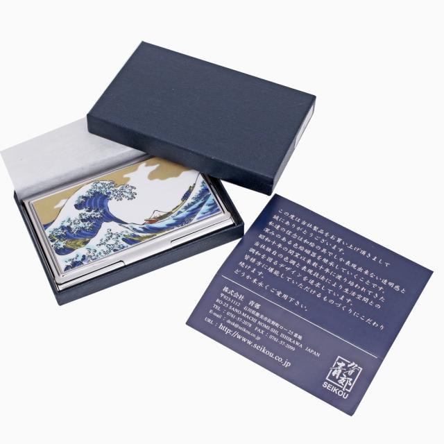 日本製 九谷焼 久谷五彩 カードケース/名刺入れ 北斎波/波 オシャレ/お洒落 男女兼用 レディース メンズ 父の日 ステンレス/STAINLESS 仕事/名刺 陶器/磁器/陶磁器 お祝い/就職祝い/誕生日/記念日 プレゼント/ギフト/贈り物