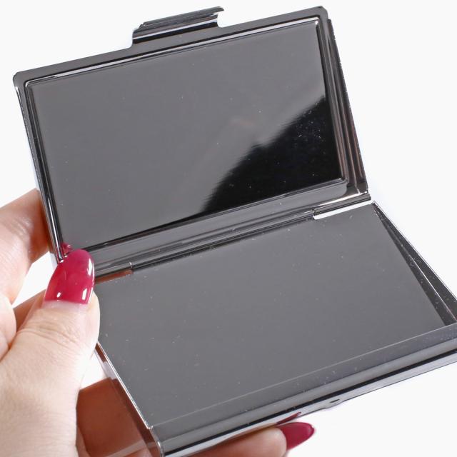 内面は鏡のようになっており、外でのヘアセットやメイク直しにもお使いいただける、便利なカードケース!