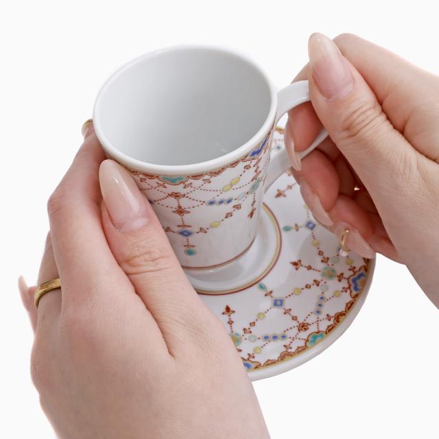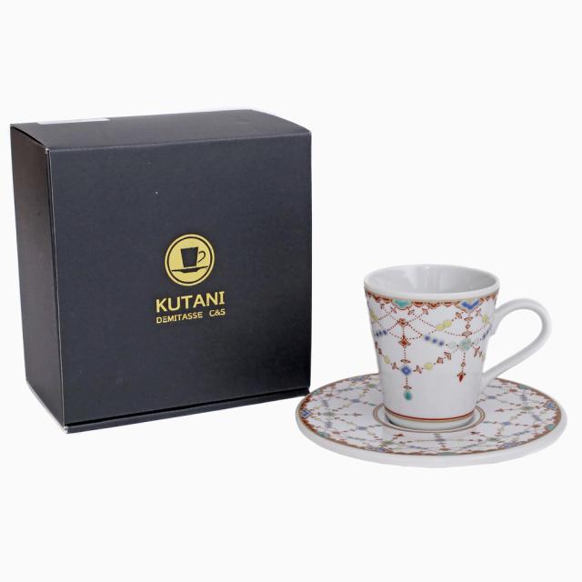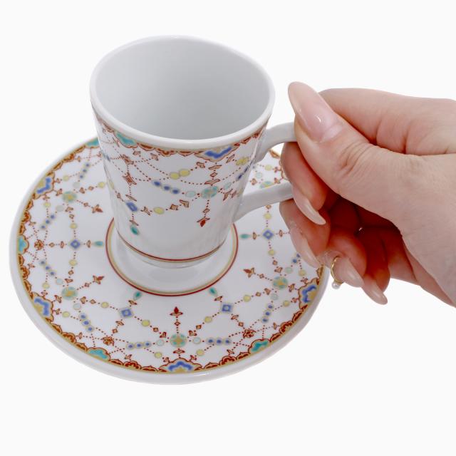 日本製 九谷焼/久谷五彩 磁気/陶器/陶磁器 小皿/コップ/カップ/ティーセット/ソーサー/デミタスカップ 縁起物 瓔珞紋 セット売り/セット 華やか/鮮やか お洒落/オシャレ お祝い/記念日/誕生日/結婚祝い/開店祝い プレゼント/贈り物/ギフト 食器/和食器 インテリア