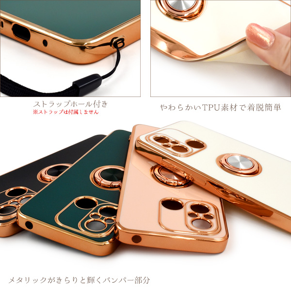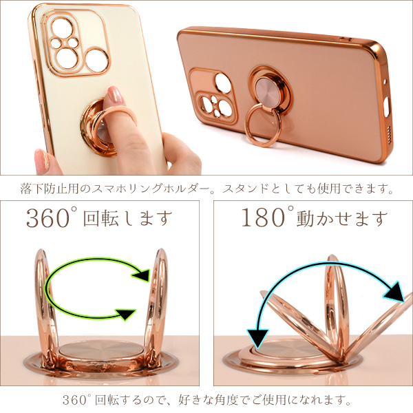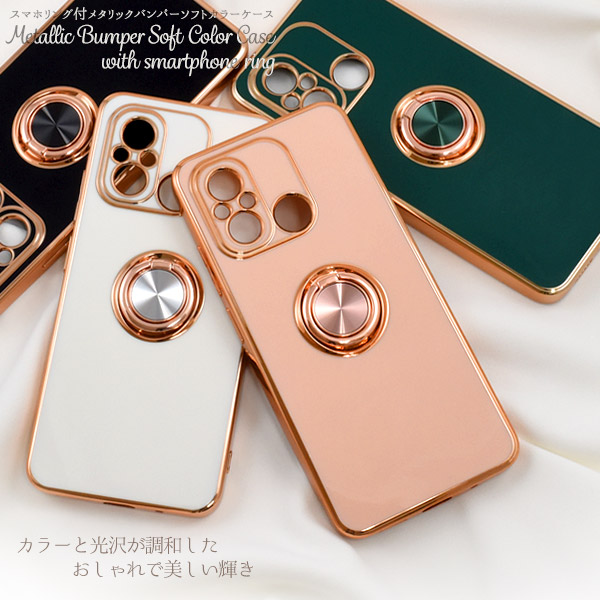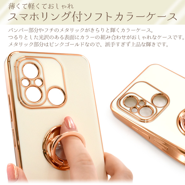スマホケース Xiaomi Redmi 12C スマホリングホルダー付き メタリックバンパーソフトカラーケース 携帯ケース シンプル かわいい お洒落 上品 指の変形防止 リング付き スマホカバー 携帯カバー 落下防止リング 保護カバー 背面カバー SIMフリー携帯 格安スマホ 携帯カバー