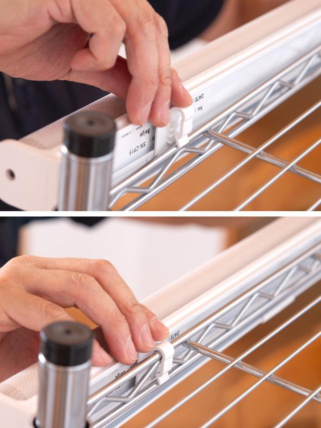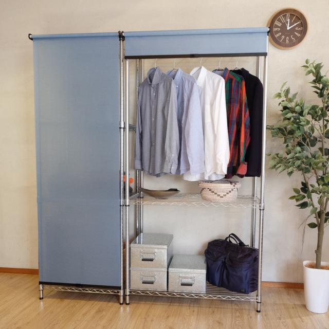簡単に取り付けができる、スチールラック用のロールスクリーンです。ごちゃごちゃしがちなスチールラックの収納を手軽に目隠しすることができ、お部屋をすっきり見せます。